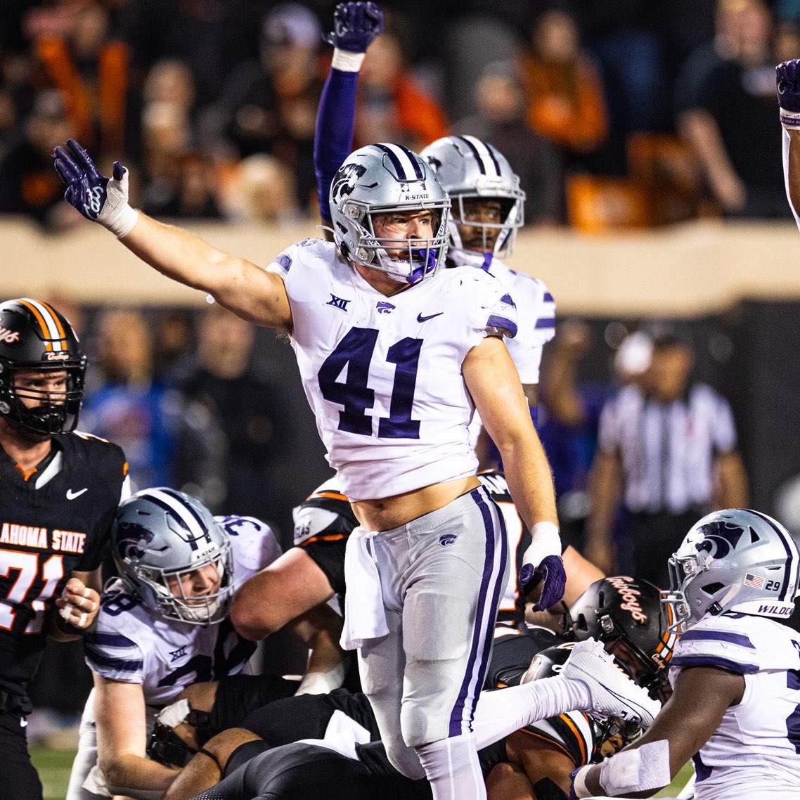 Senior Linebacker at Kansas State #41. 2x Team Captain. 2023 2nd Team All Big 12. Former walk-on.