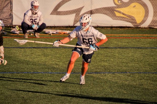 Student-Athlete at Roger Williams University playing lacrosse.
