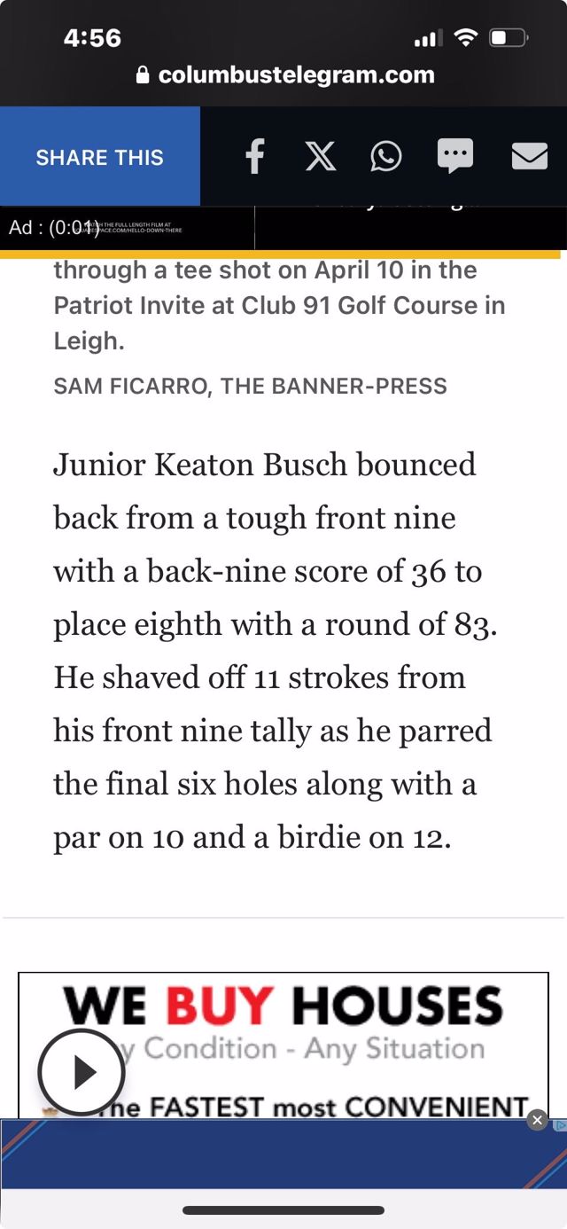 My name is Keaton Busch I’m a golfer at CCC in Columbus. I love golf and am always out on the course in the free time. My favorite course I’ve ever played was Wild Horse in Gothenburg where I shot my career low a 68.